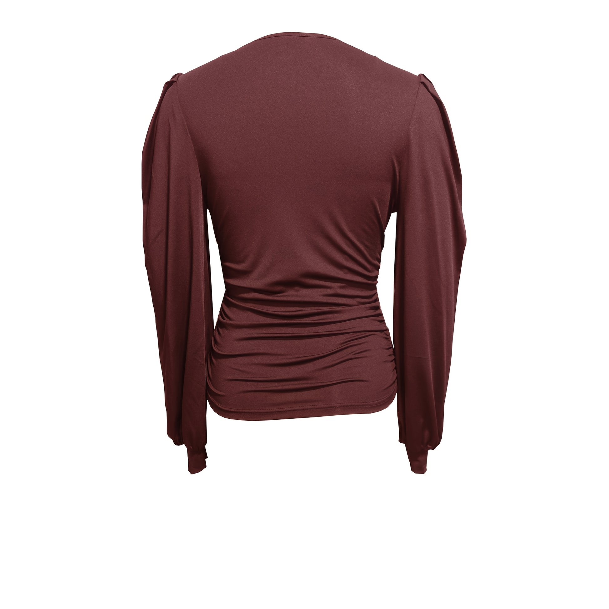 Ladies' Casual Solid Color Pleated V-neck Long Sleeved T-shirt